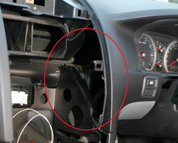 With these 2 screws removed just lift the plastic tabs of the tissue box over their holders and slide the tissue box towards you. As it comes away, just be careful to unplug the cigarette lighter as it comes forwards. You should now have the tissue box free. We’ll be cutting this plastic box apart later to mount the scan converter against it so keep it handy somewhere. There are 2 bolts on either side of the console, just undo these (8mm socket with extension).